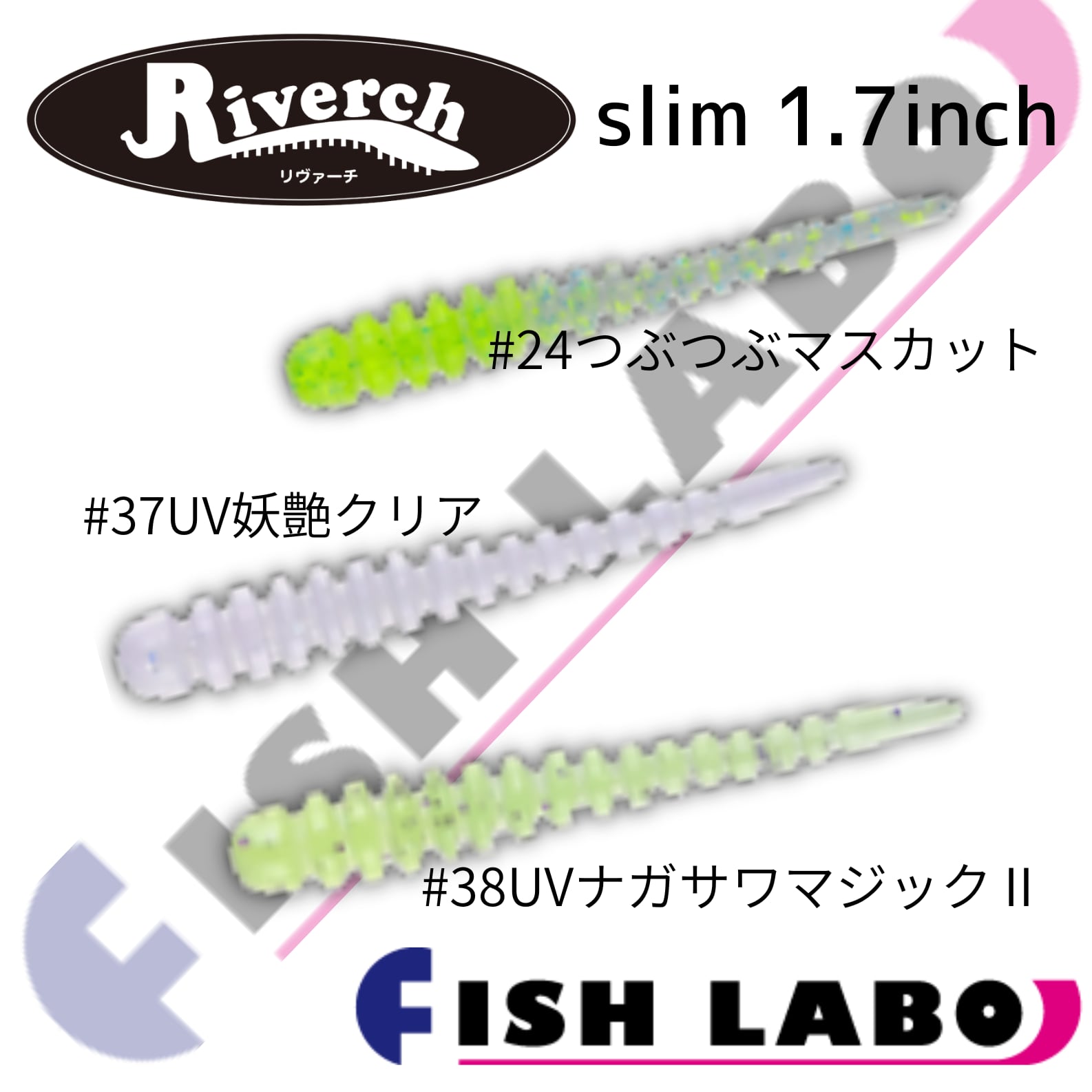 Riverchシリーズの中でも、特に人気のRiverchSlimに新サイズがラインナップ。 1.7inchの一口サイズボディで、Riverchシリーズの特徴である深リブと、前後硬度別ツートンと兼ね備 えたモデル。ボディを細くしすぎると、リブの良さである水噛みが弱くなってしまうので、ある程度の太 さを維持。他モデルのRiverch1.6inchとでは、同様サイズながらボリュームの違いがあるので、よりス ローな釣りにはRiverch1.6inch。吸い込み重視で手返し良く誘いたい時はSlim1.7inch。と使い分け ができるような形状に調整しました。豆アジサイズ~デカアジまで幅広く狙え、全国どこでも通用する汎 用性が魅力です。