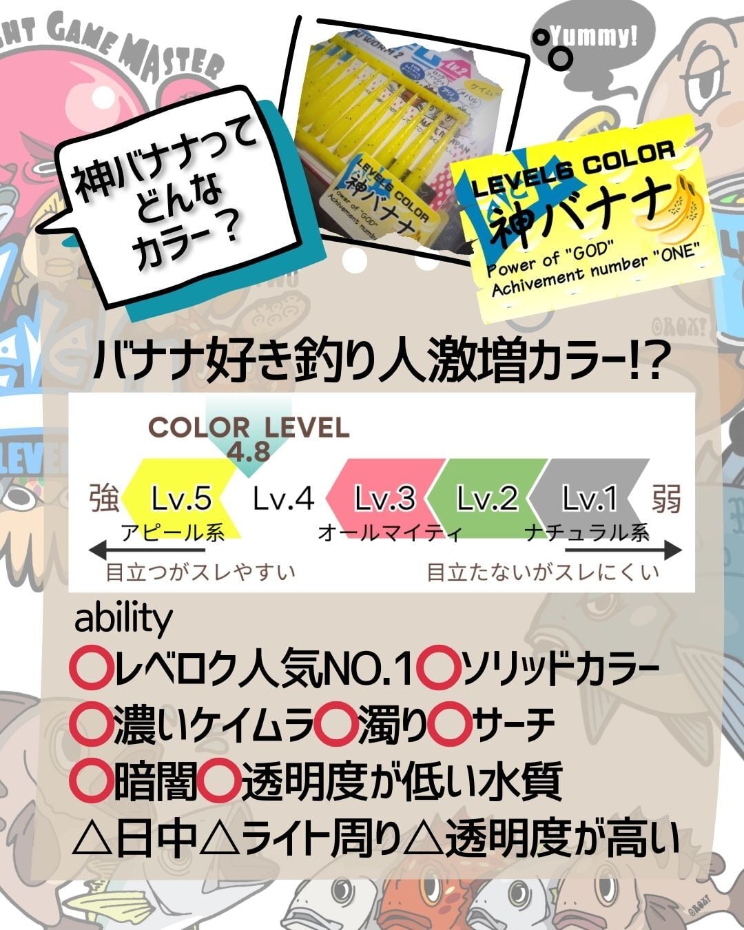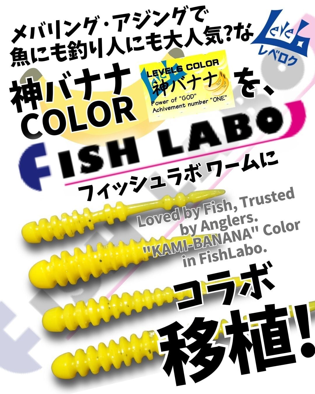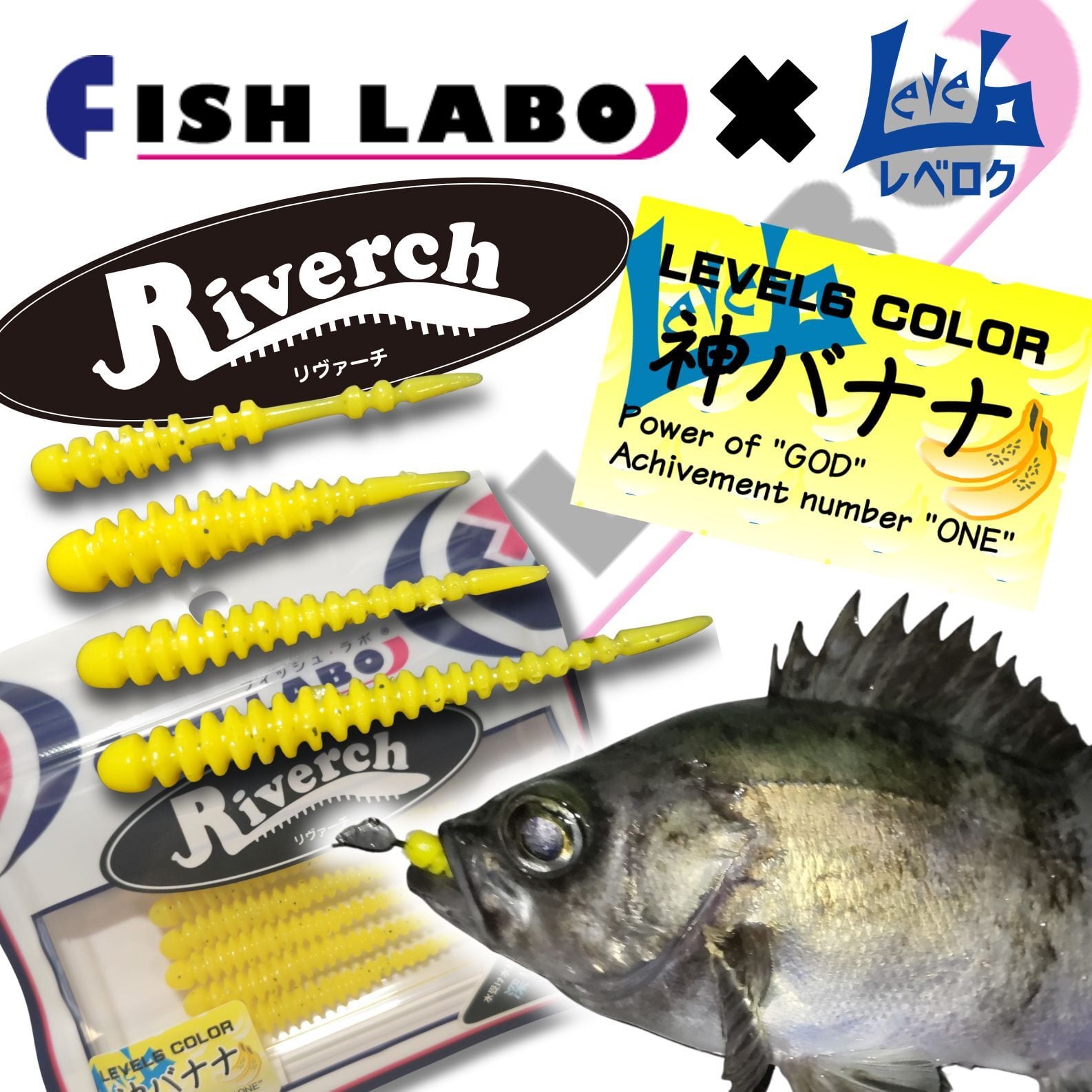 レベロクにおいて一番人気であり、一番の実績を誇る看板カラー「神バナナ」を、フィッシュラボの「リヴァーチ」シリーズに移植!