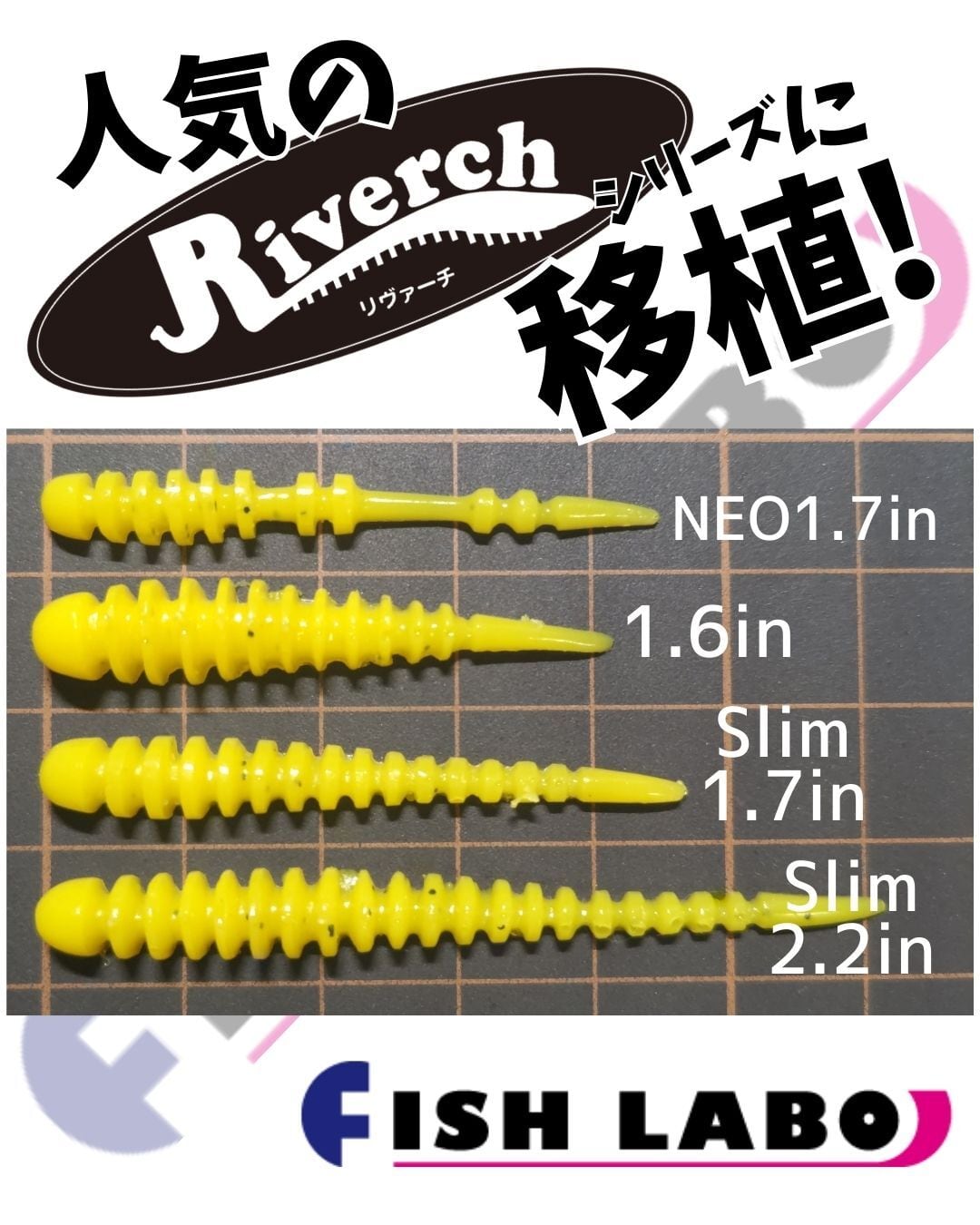 ②Riverch 1.6inch(7本入):アピール力とフッキング率のバランスを狙ったシリーズの原点。